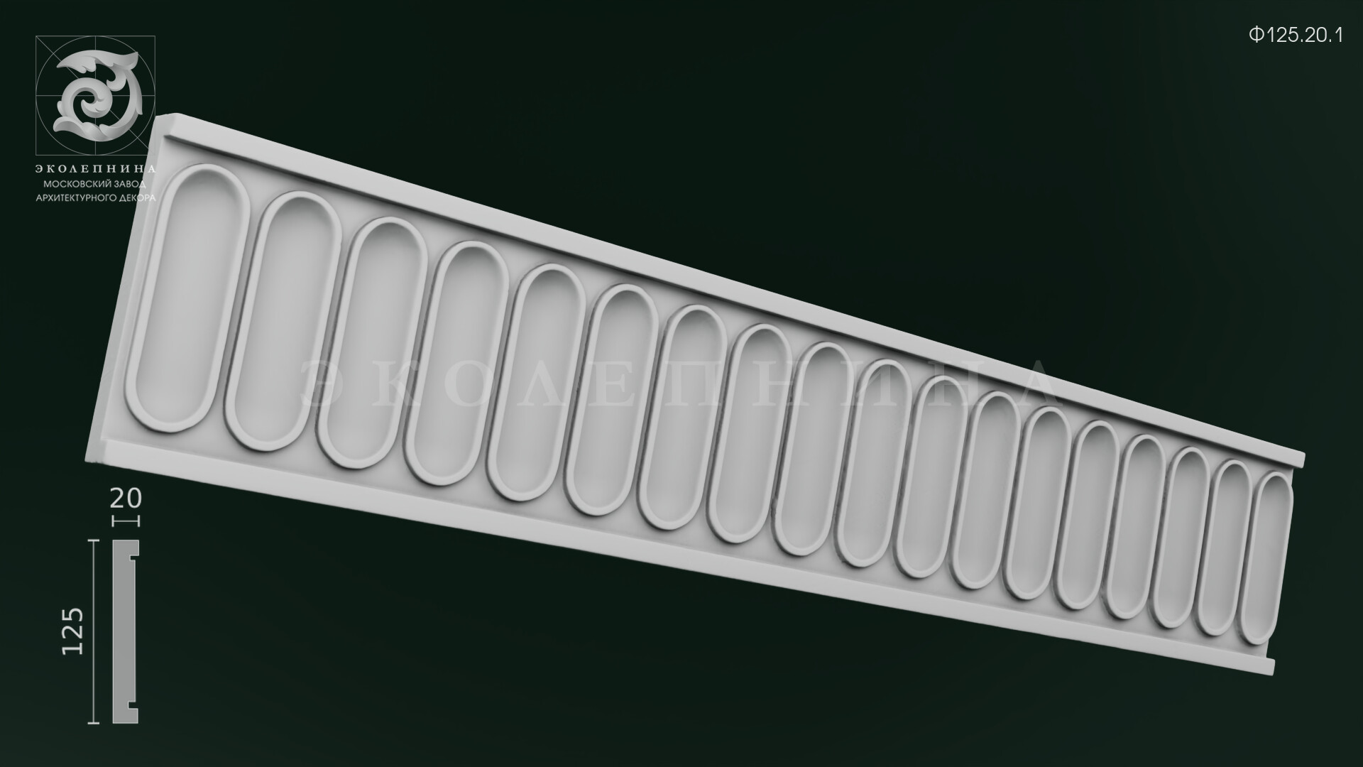 По характеру рисунка это выразительная геометрия ар-деко с оттенком модерна: спокойная декоративность без перегруза, идеальная для современного интерьера с классическими акцентами. Гипсовый фриз Ф125.20.1 органично работает как фризовый пояс под карнизом для визуального «подъёма» потолка, как архитектурная тяга для разделения фактур (например, между краской и обоями), а также как инструмент горизонтального зонирования и построения рамок на стенах. Раппорт узора рассчитан на бесшовную стыковку, позволяя собирать непрерывную ленту нужной протяжённости.