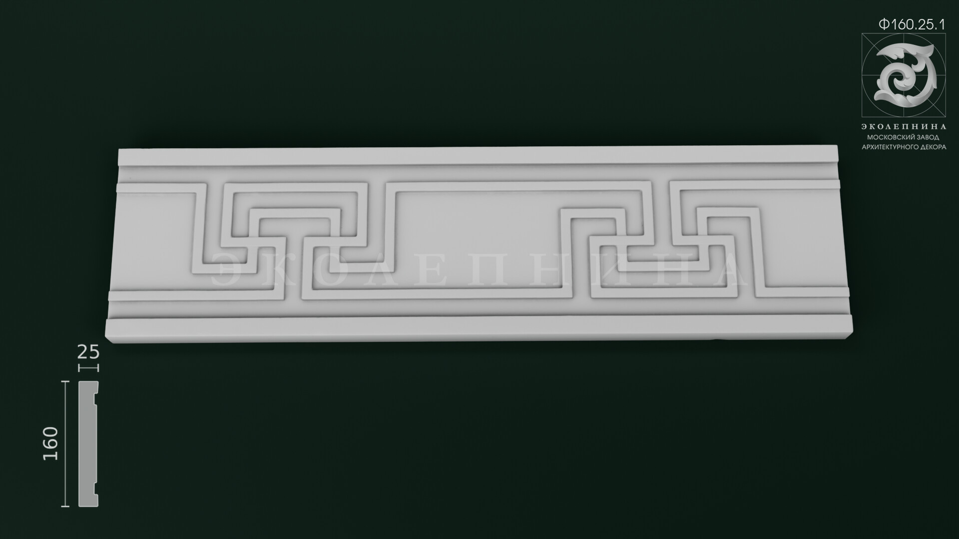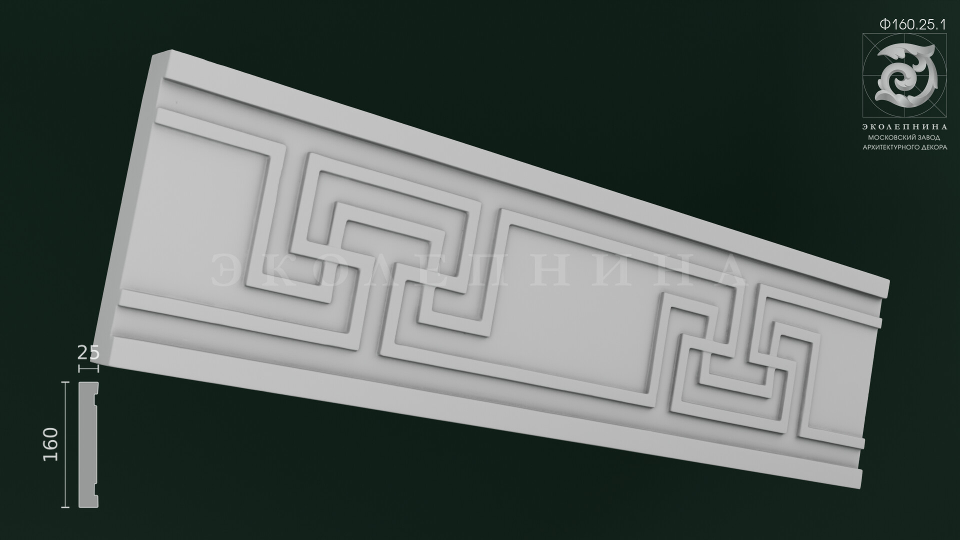 Гипсовый фриз Ф160.25.1 построен на строгой геометрии: прямоугольные поля объединены непрерывной ломаной линией, образующей стилизованный меандр. Рельеф выверен по глубине, а четкие грани рисунка создают выразительную светотень и подчеркивают графичность ленточного орнамента. Отливка из скульптурного гипса Г-16 обеспечивает чистоту плоскостей и аккуратную деталировку контуров.