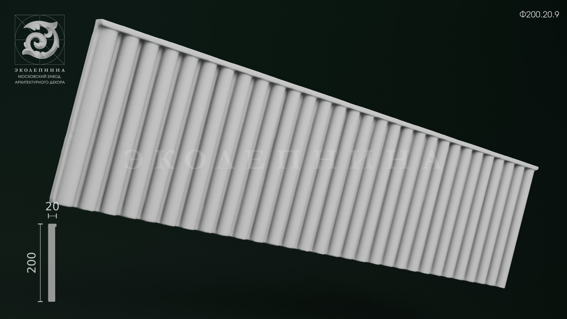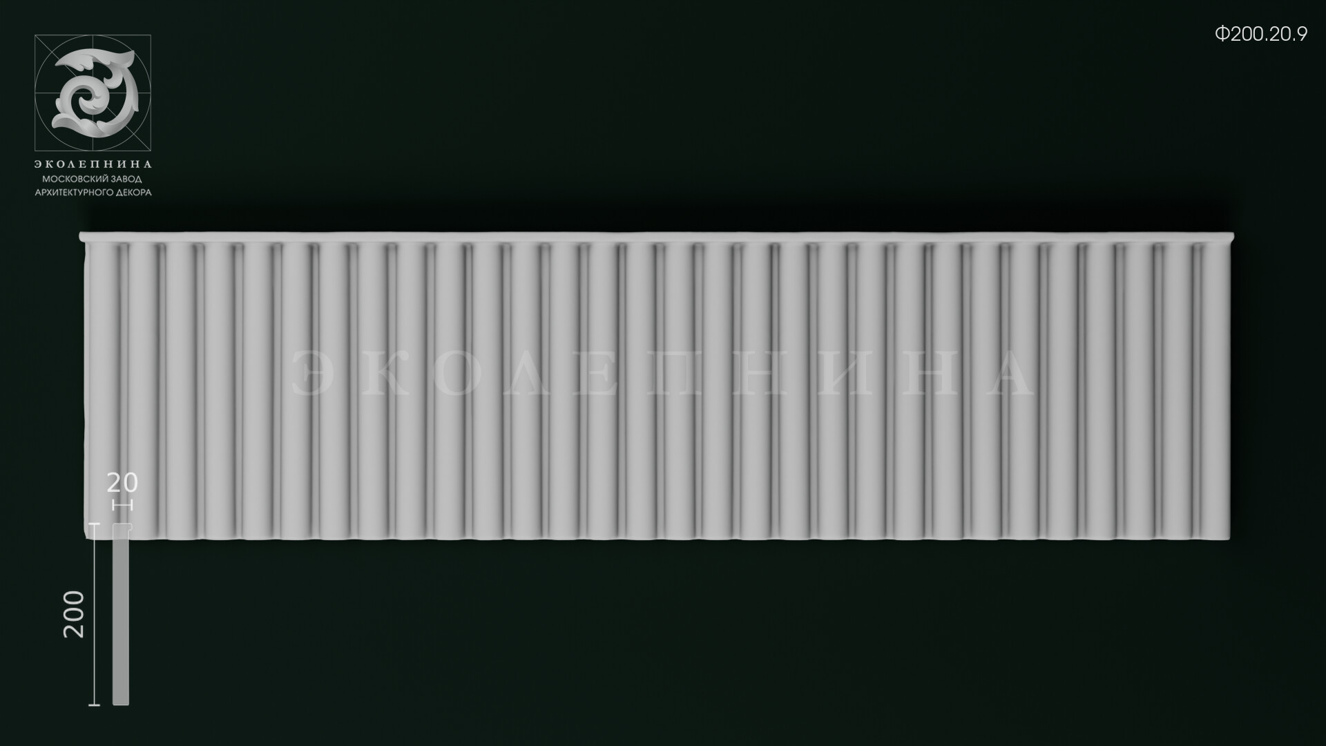 Гипсовый фриз Ф200.20.9 построен на строгом вертикальном ритме пилястры. Они придают конструкции стройность и визуально «вытягивают» пространство, прямо как мои ноги в туфлях на шпильке." style="cursor: help;">каннелюр: равномерные желобки создают благородную упорядоченность и выразительную игру светотени на гранях. Четкая геометрия профиля подчеркивает глубину рельефа, а скульптурный гипс Г-16 обеспечивает чистую отливку и аккуратную деталировку, необходимую для архитектурной тяги и ровного «чтения» формы по всей длине.