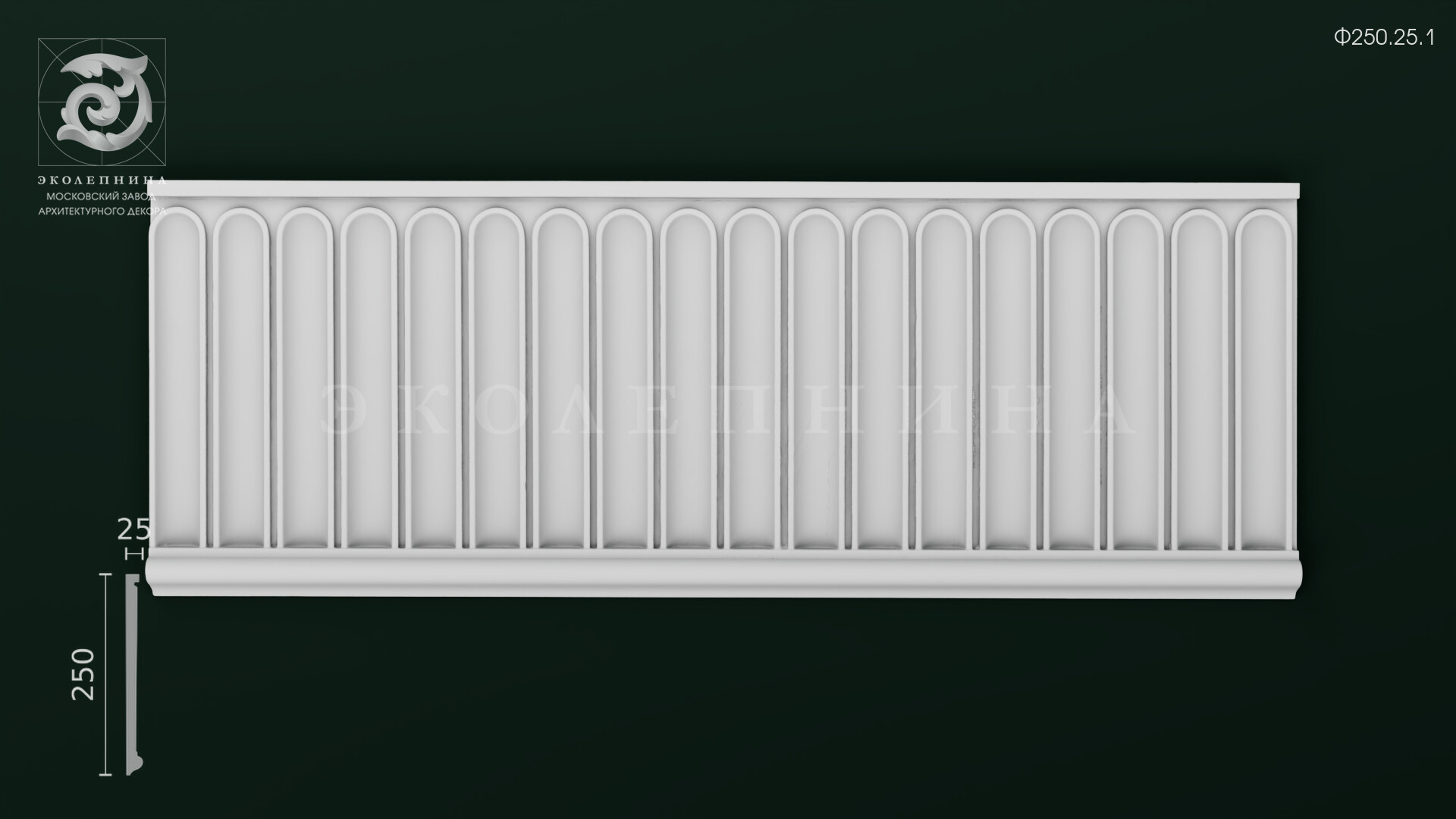 Гипс — вечный материал архитектурного декора: гипсовый фриз Ф250.25.1 можно окрашивать в тон стен, делать тонкую патину, подчёркивать рельеф полутоном или усиливать парадность поталью. Такая отделка раскрывает глубину пилястры. Они придают конструкции стройность и визуально «вытягивают» пространство, прямо как мои ноги в туфлях на шпильке." style="cursor: help;">каннелюр и превращает строгую пластику в выразительный художественный акцент.