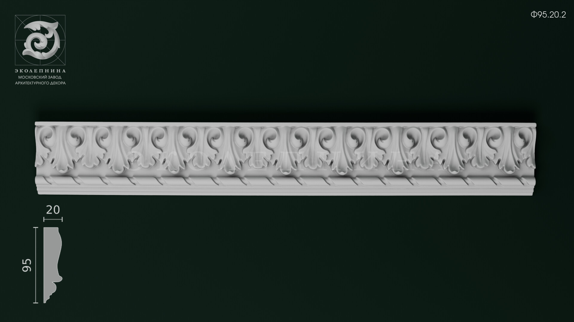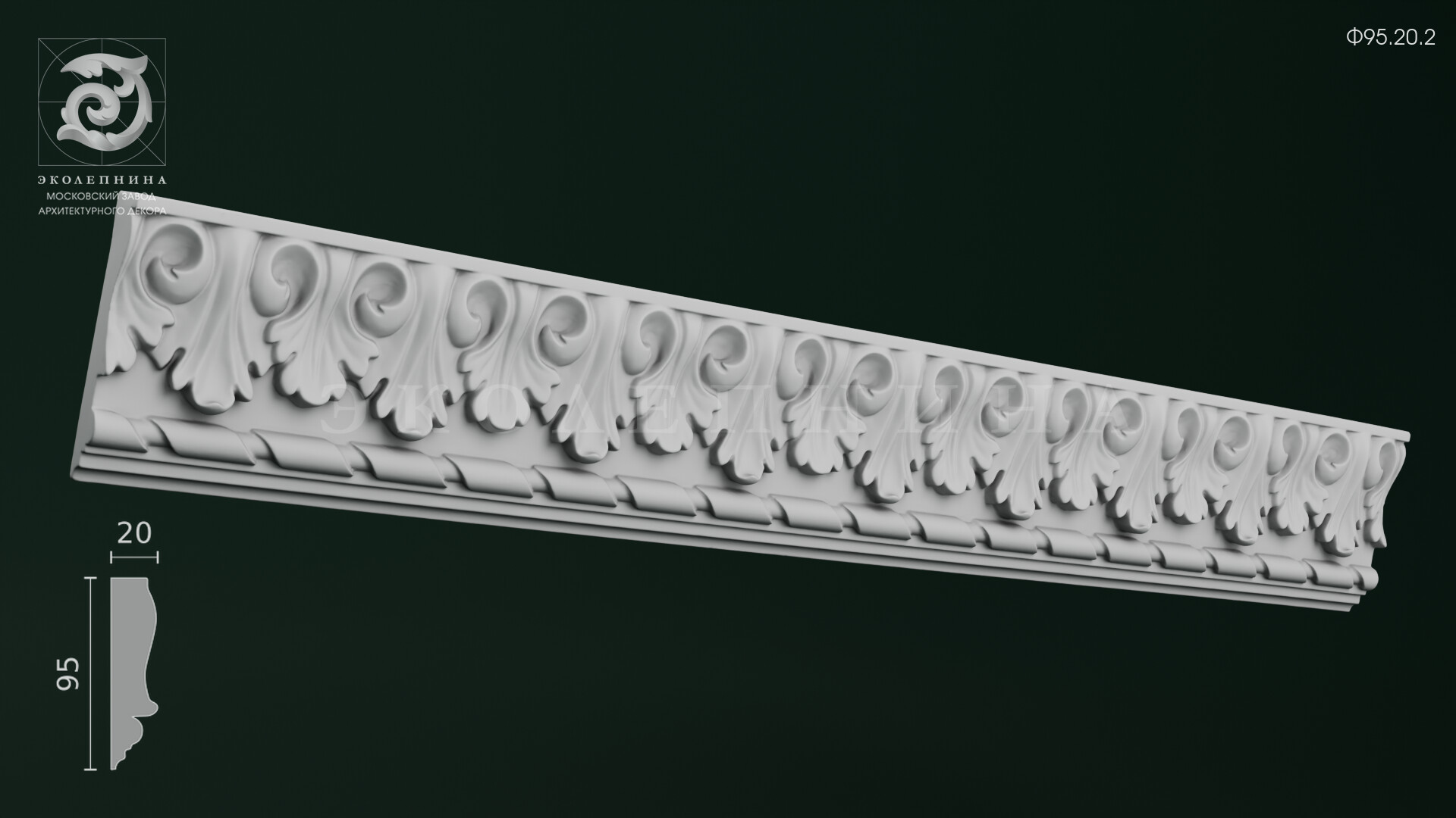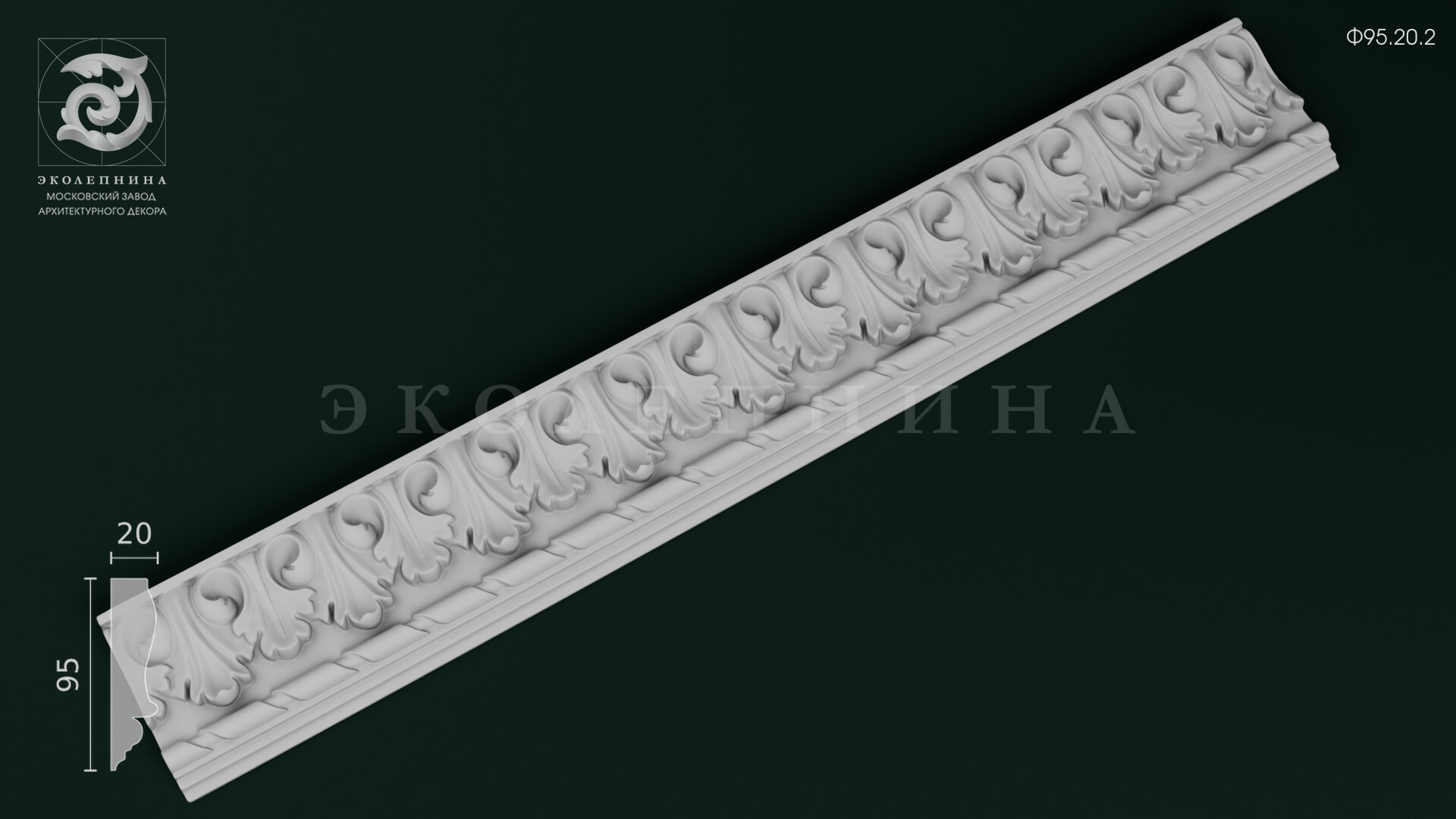 Гипс — материал вечной архитектуры: Гипсовый фриз Ф95.20.2 можно окрашивать в тон стен, тонировать для подчёркивания рельефа или покрывать поталью (золочением), усиливая торжественность орнамента и глубину пластики.
