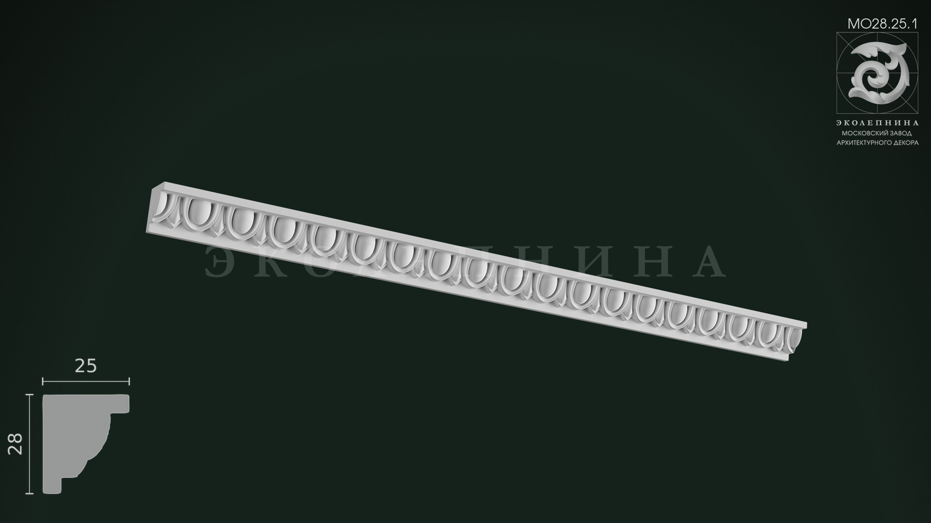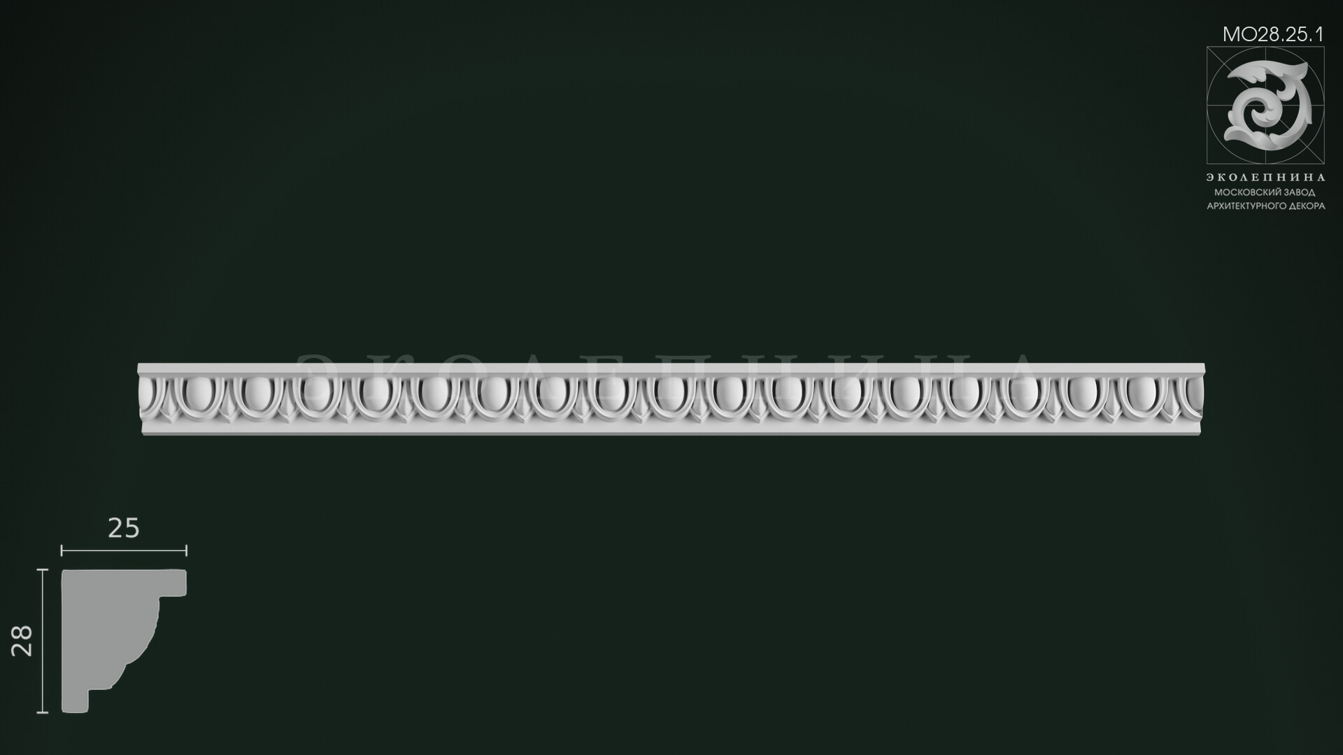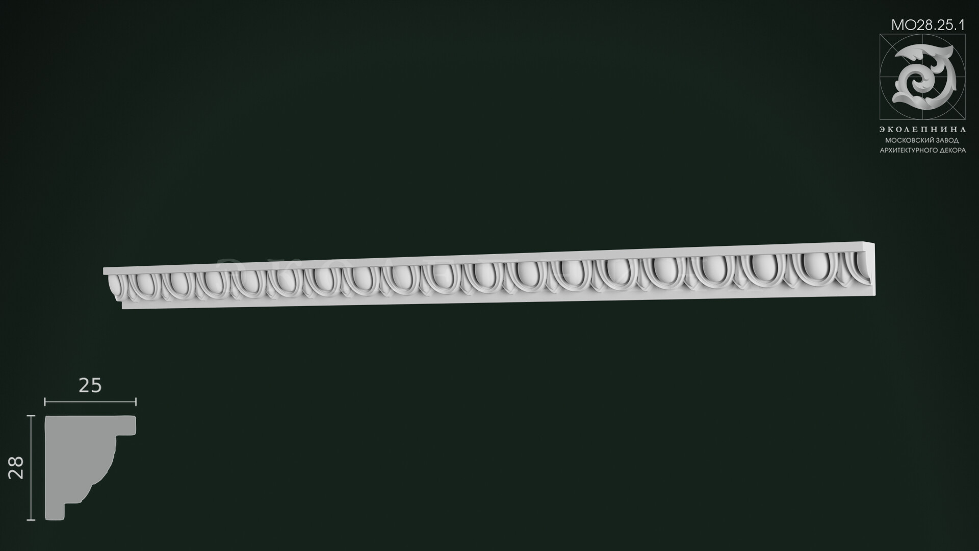 Молдинг гипсовый с орнаментом МО28.25.1 — утончённая порезка с классическим мотивом ионики, где повторяющиеся «овы» выстраиваются в торжественный, дисциплинированный ряд. Рельефный декор звучит как архитектурная строка: чёткие выемки и плавные выпуклости создают мерный орнаментальный шаг, а высокий рельеф создает богатую игру теней при боковом освещении, подчёркивая глубину каждой формы.