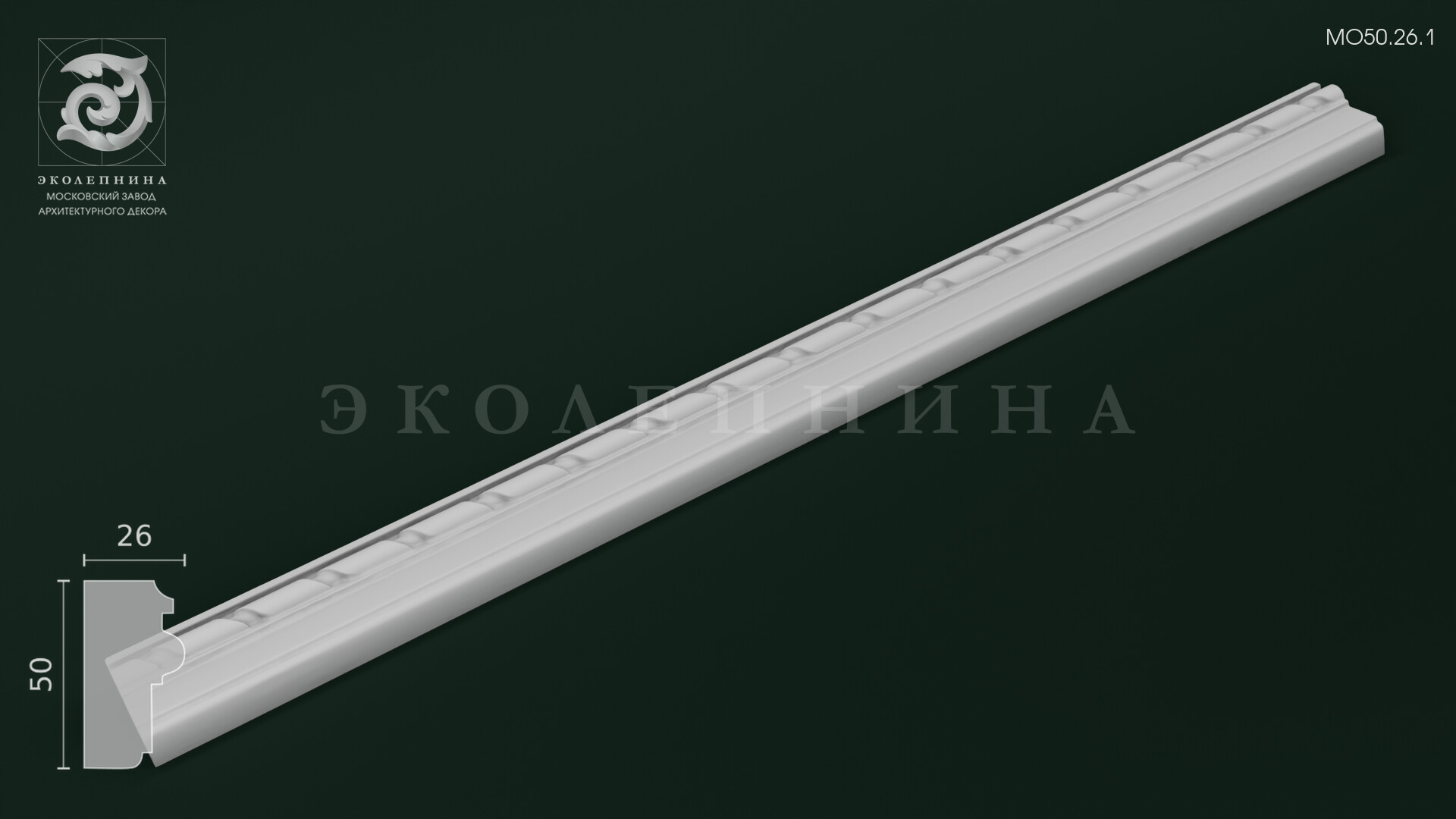 Молдинг гипсовый с орнаментом МО50.26.1 — утончённая порезка с классическим мотивом «бусы», где плавные овалы выстроены в уверенный, гармоничный ряд. Рельефный декор звучит сдержанно и аристократично: мягкие переходы форм и точная прорисовка создают ощущение ювелирной художественной лепки. Высокий рельеф создает богатую игру теней при боковом освещении, благодаря чему поверхность «оживает» и приобретает глубину.