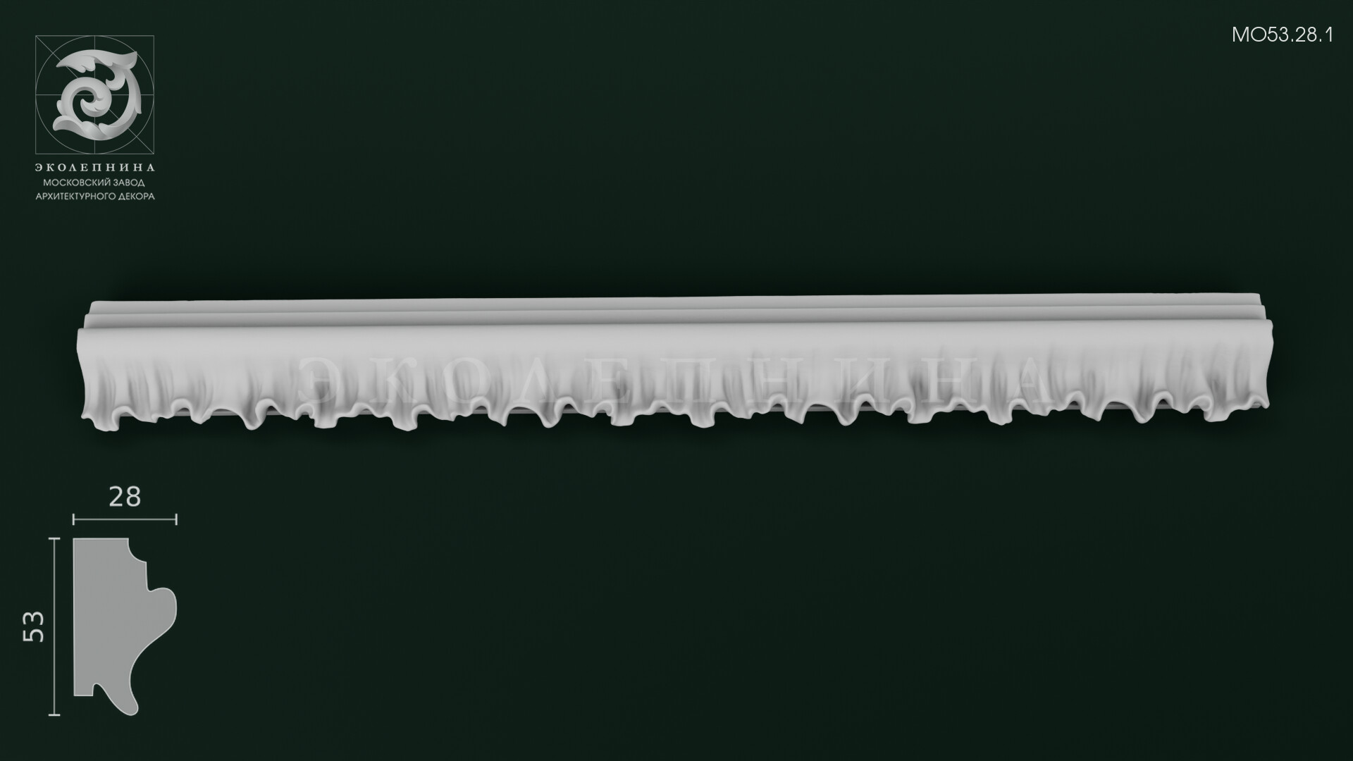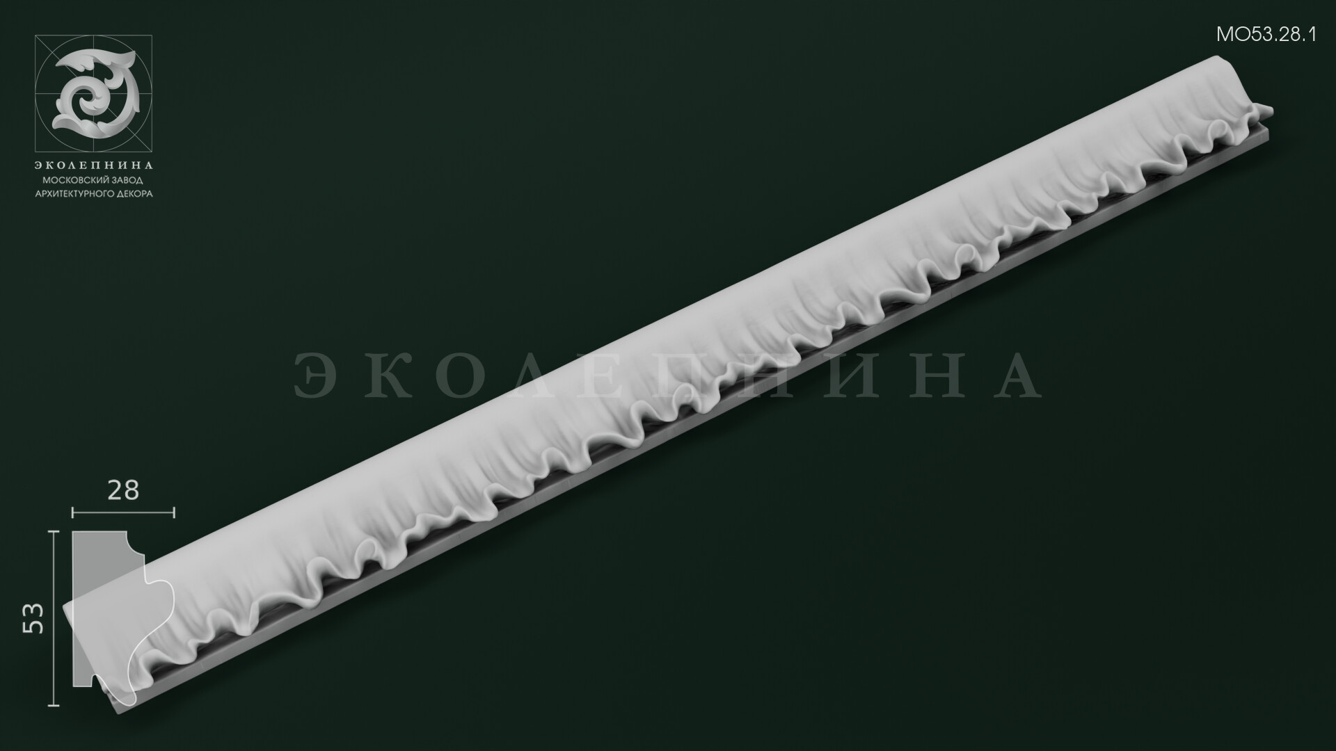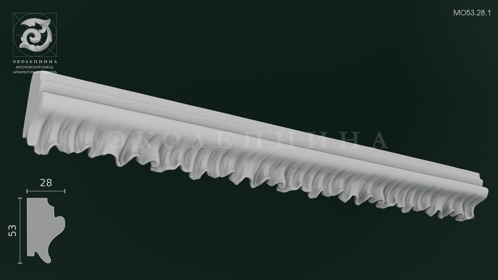 Молдинг гипсовый с орнаментом МО53.28.1 — выразительная порезка с растительным мотивом, где пластика листьев развернута в мягкую, почти бархатную волну. Рельефный декор построен на живом «течении» форм: тонкие переливы складок, деликатные поднутрения и нюансная фактура создают ощущение художественной лепки, а не механического повторения. Высокий рельеф создает богатую игру теней при боковом освещении, делая поверхность по-настоящему объемной и динамичной.