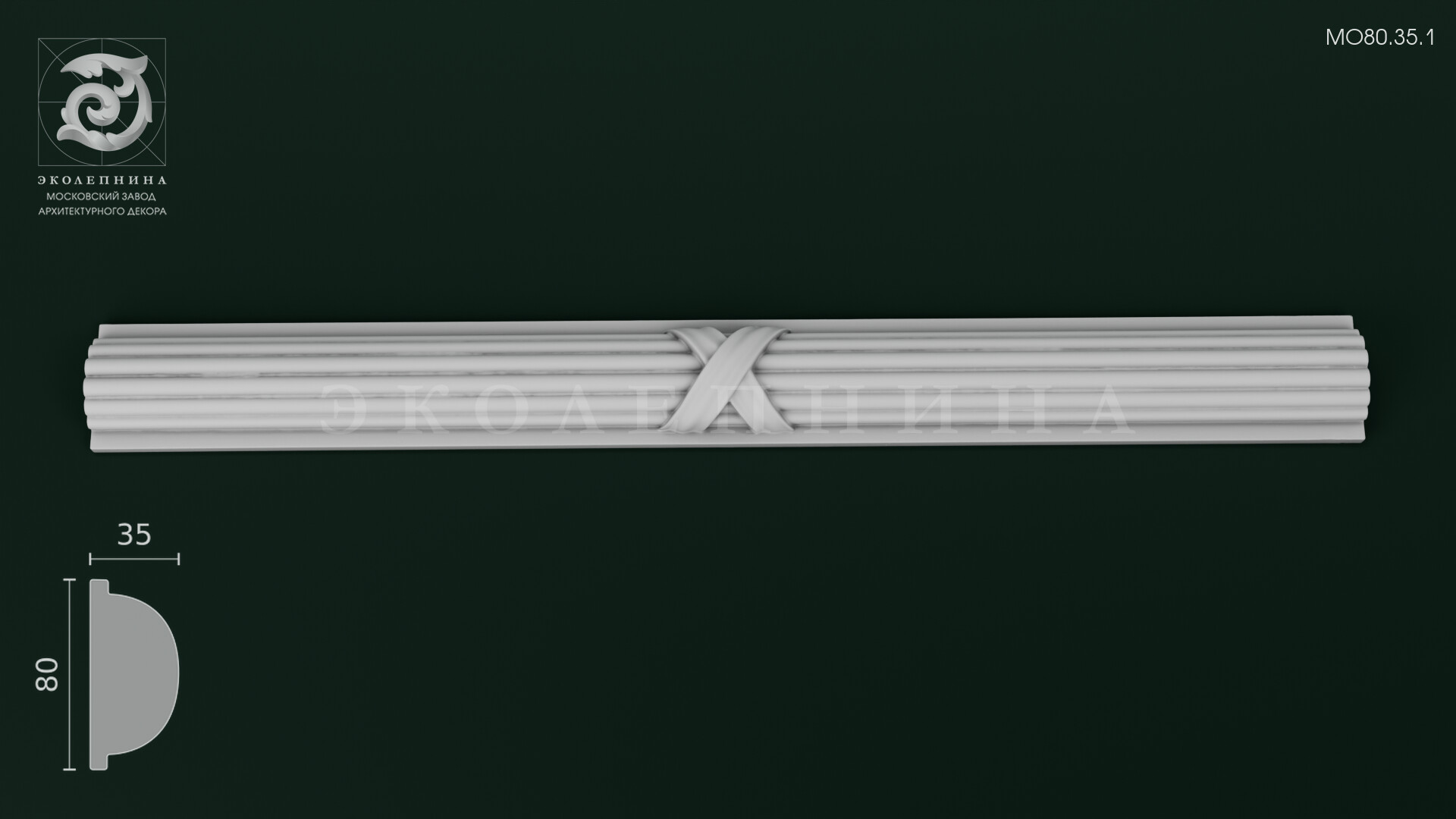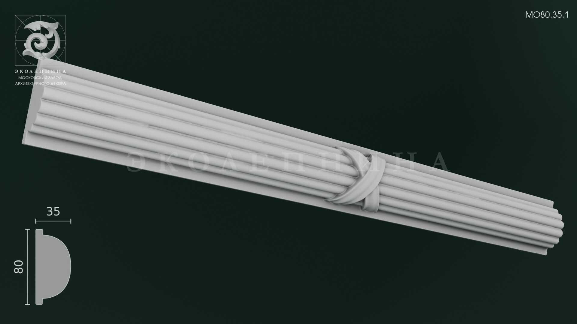 Молдинг гипсовый с орнаментом МО80.35.1 — элегантная классическая порезка, где вытянутые пилястры. Они придают конструкции стройность и визуально «вытягивают» пространство, прямо как мои ноги в туфлях на шпильке." style="cursor: help;">каннелюры выстраиваются в строгий парадный ритм, а центральная «перевязь» собирает композицию в цельный архитектурный жест. Рельефный декор звучит сдержанно и аристократично: чистота линий, ясная геометрия и тонкая пластика профиля создают ощущение выверенной художественной лепки. Высокий рельеф создает богатую игру теней при боковом освещении, подчеркивая глубину желобков и благородную графику формы.