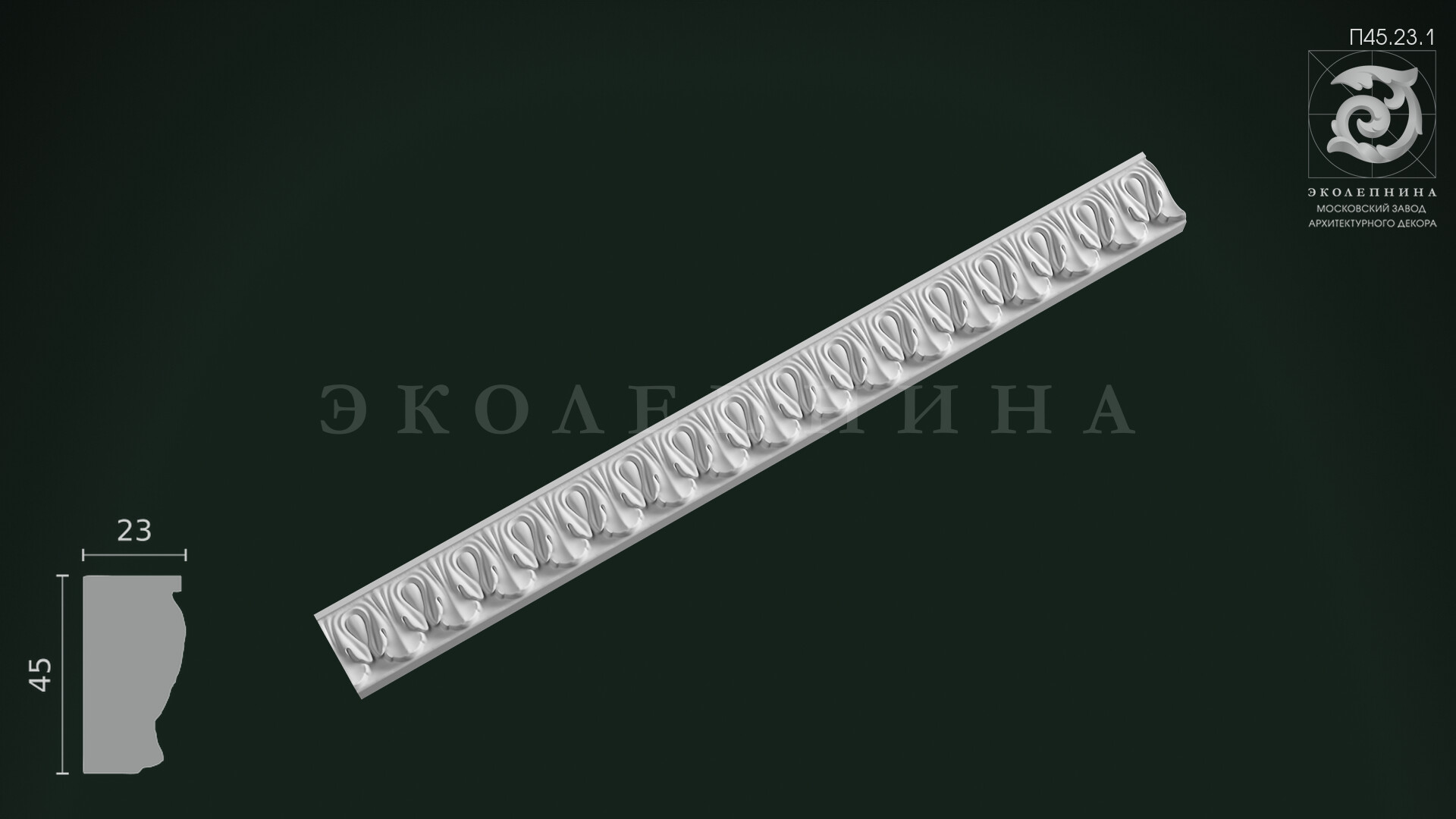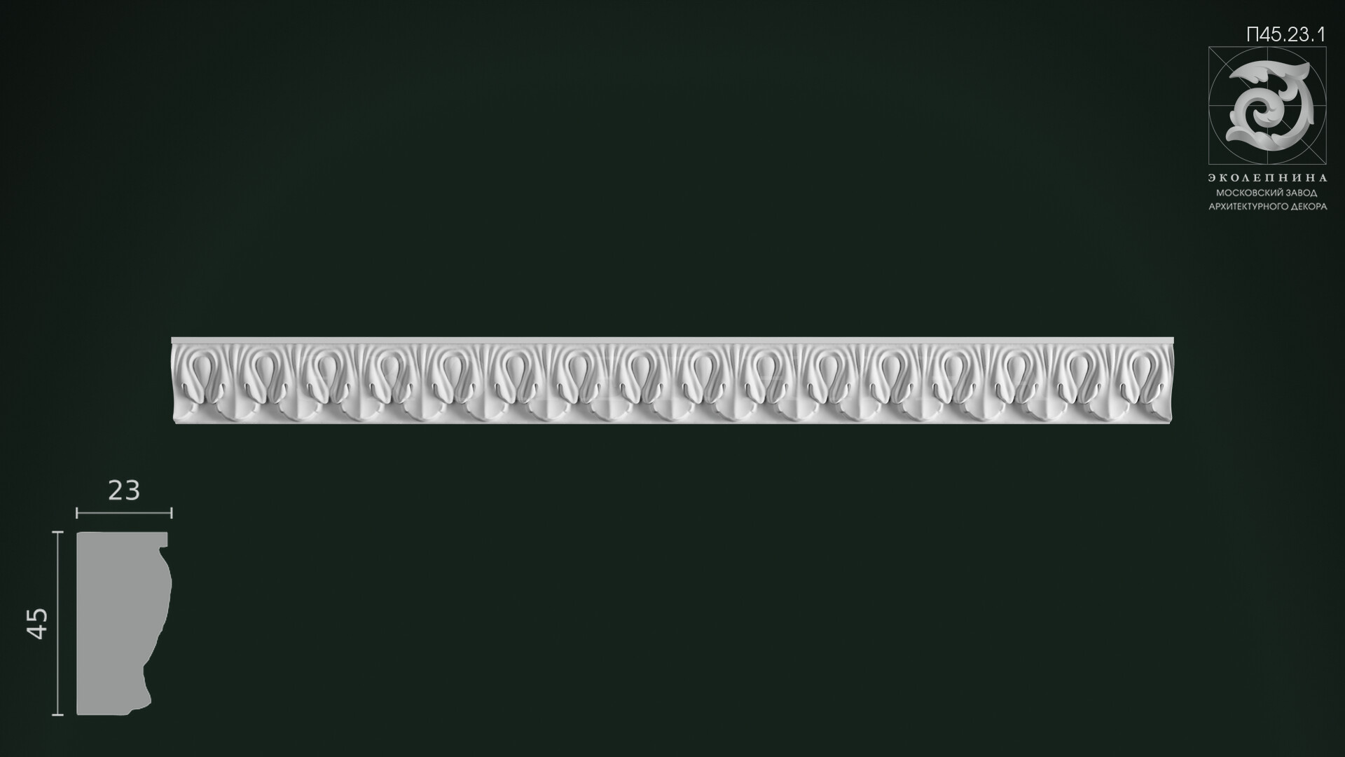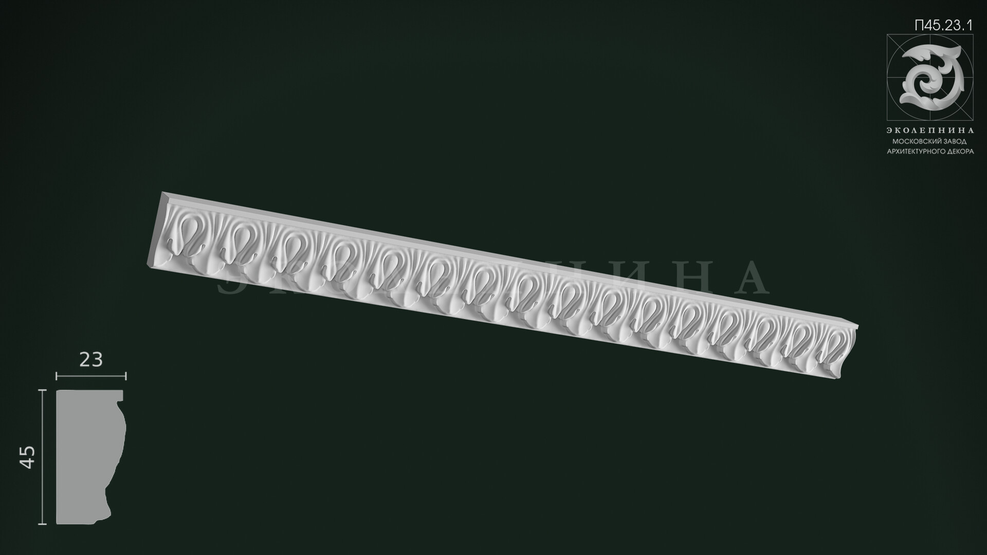 Гипсовая порезка П45.23.1 — рафинированная орнаментальная тяга с мотивом ионики (овы), где античная логика формы превращается в ювелирное украшение интерьера. Раппорт выстроен в строгой симметрии: повтор овальных элементов задаёт торжественный архитектурный ритм и подчёркивает стройность классических линий. Ценность рельефа — в точной пластике и чистой «геометрии света»: сохраняется чёткая детализация рельефа без «замыливания», свойственного дешевым аналогам. Изделие отливается из скульптурного гипса Г-16, благодаря чему ювелирная проработка читается на любой финишной отделке — от матовой окраски до деликатной патины.