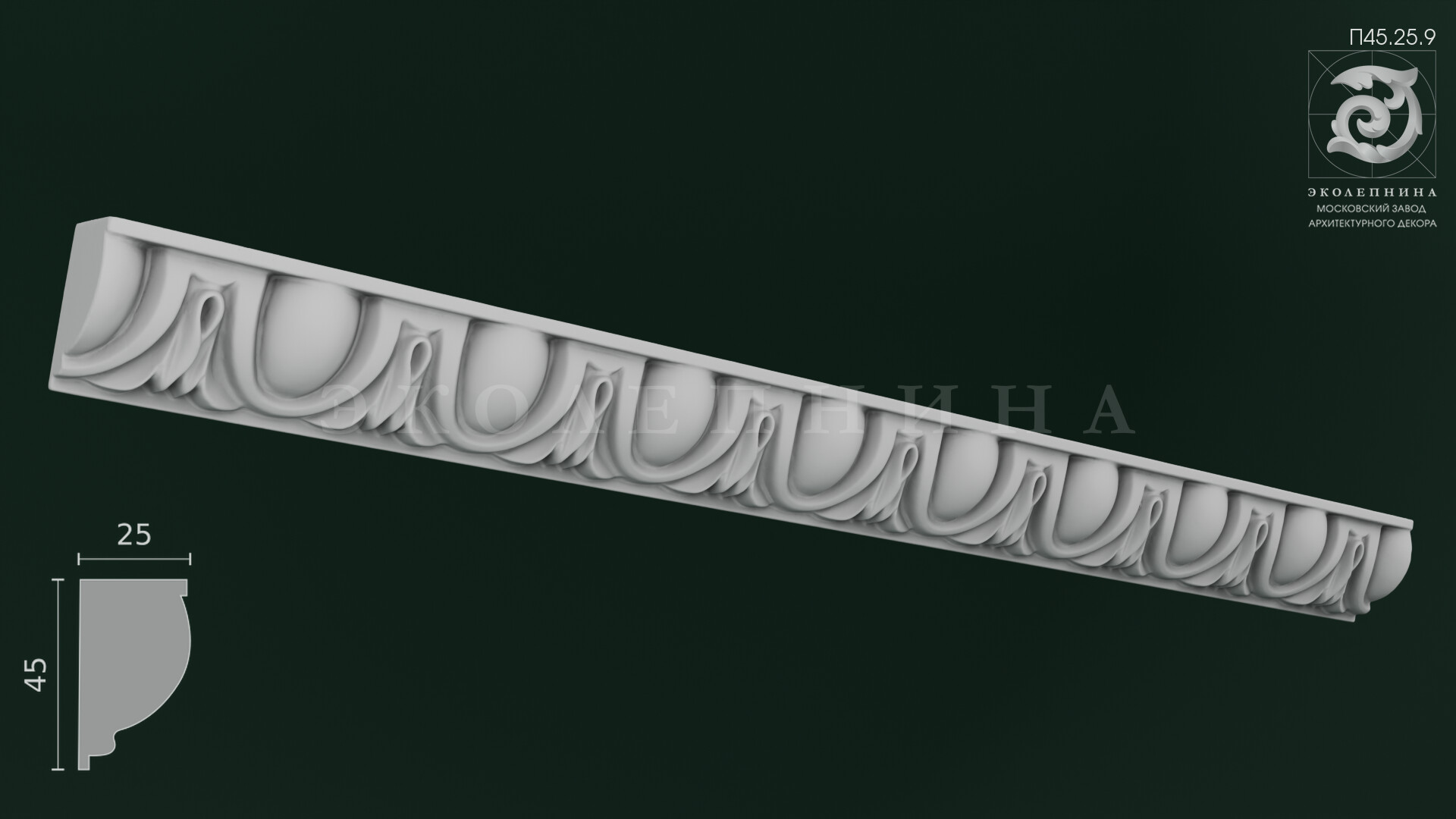 Порезка — это конструктор для тонкой настройки композиции. П45.25.9 можно применять как самостоятельный узкий молдинг для зонирования стен и создания рамок под панели, обои или декоративную штукатурку. Второй сценарий — вставка в карниз: гладкий профиль дополняется орнаментальной лентой, превращаясь в сложносоставный фриз с эффектом инкрустации и более богатой детализацией рельефа. Также уместна работа по порталам и наличникам, каминным полкам, обрамлению стационарных зеркал и ниш — там, где нужен точный классический акцент. По стилистике мотив ионик безупречно раскрывается в неоклассике и классических интерьерах, поддерживая стройность пропорций и статусную графику.