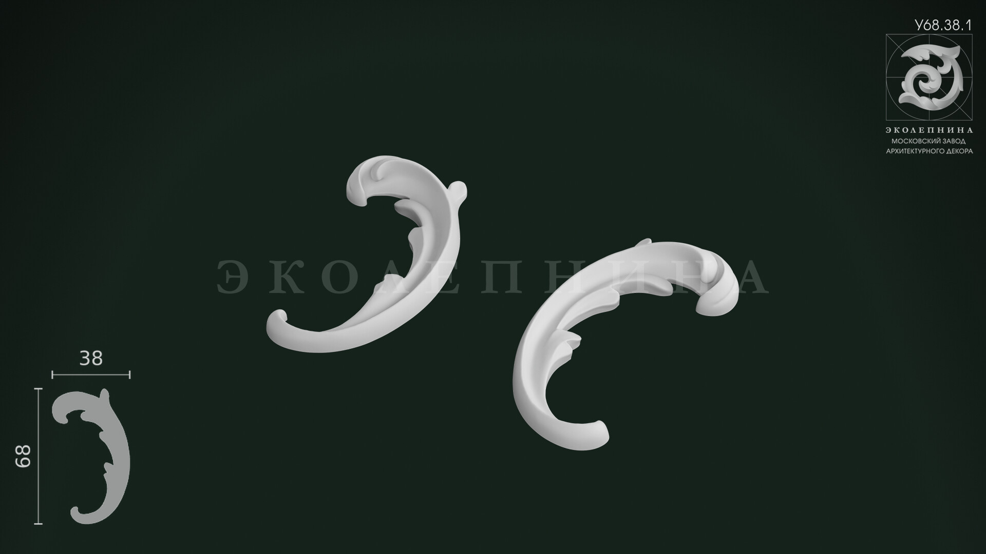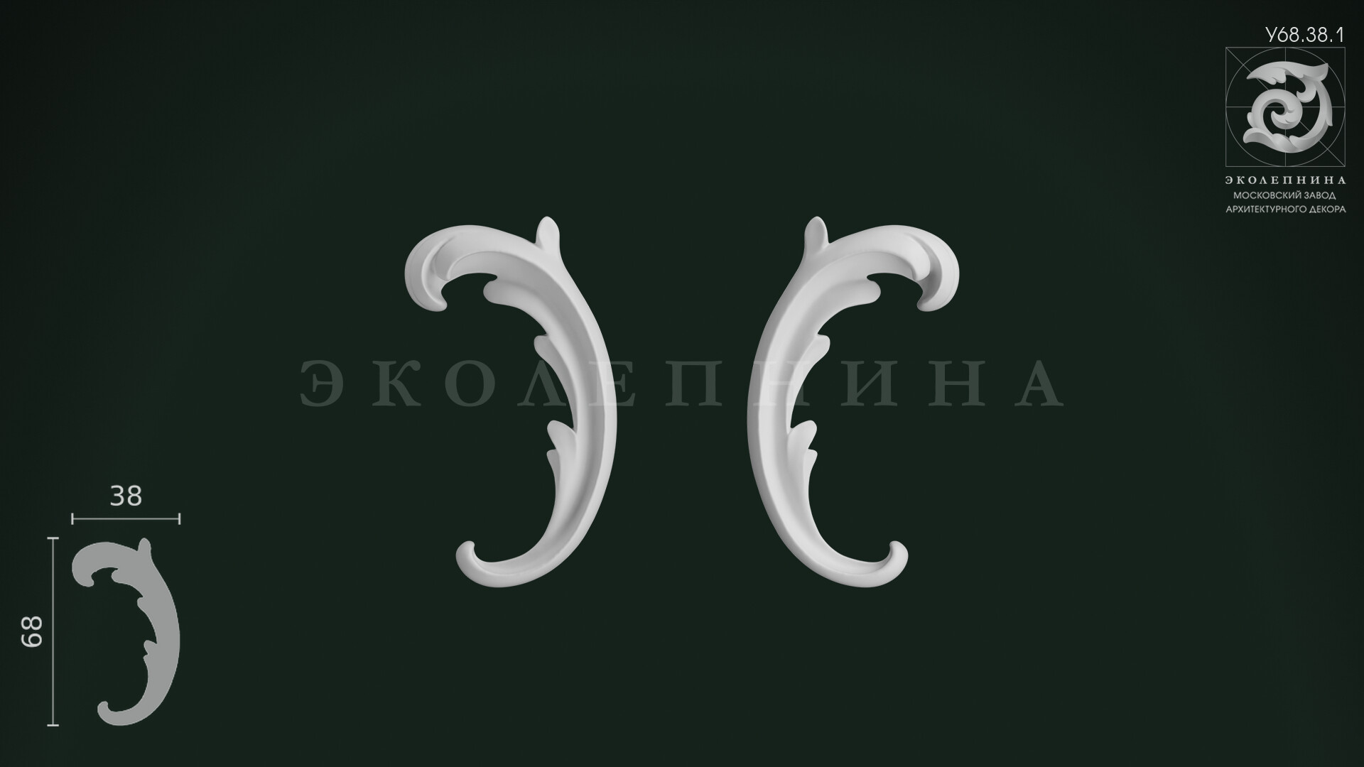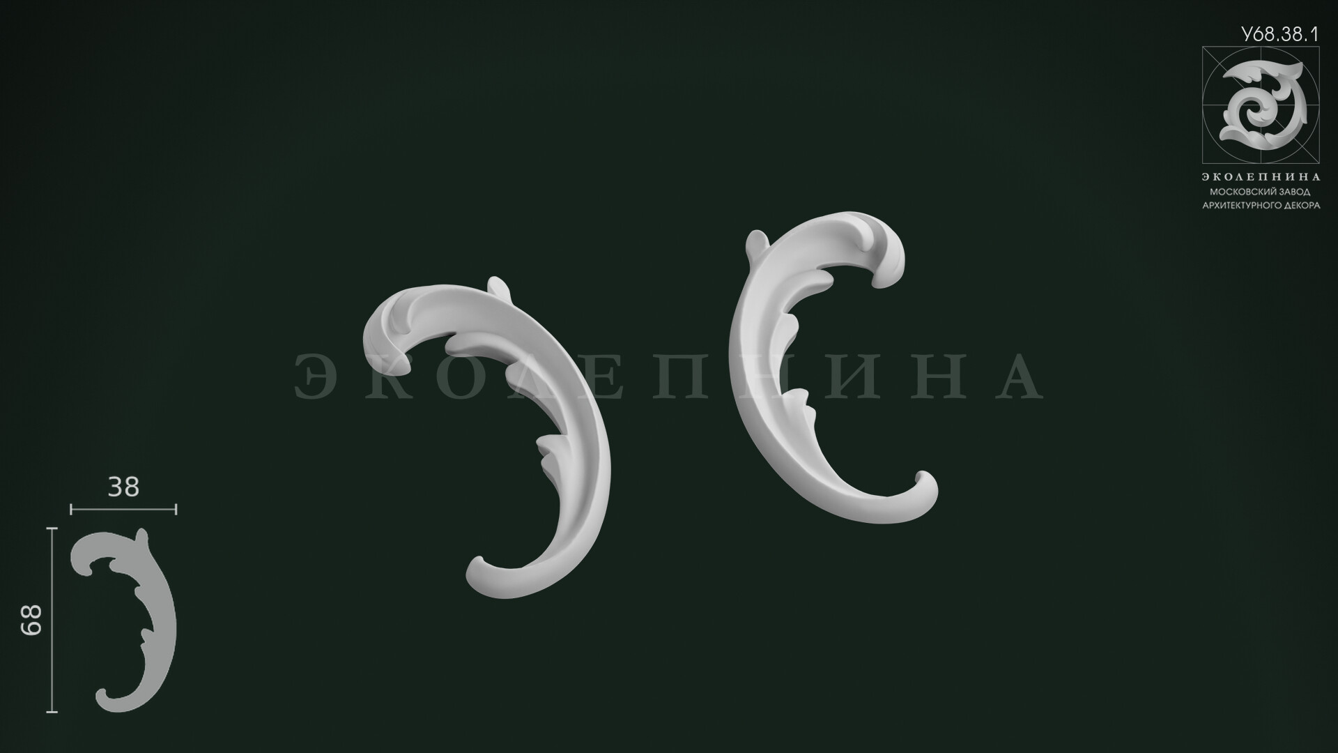 Элемент применяется для оформления углов и художественной стыковки профилей в задачах, где важна чистота линий и скорость работ: стыковка молдингов выполняется через готовую орнаментальную вставку, что позволяет собирать рамочный декор на стенах и по периметру потолка без трудоемкого запила под 45°. У68.38.1 идеально подходит для композиции «картридж + молдинг», для создания эффектной зеркальной рамы, зонирования стен (панельные карты), а также как орнаментальная вставка в верхних узлах дверных порталов. По характеру завитка деталь тяготеет к барочной традиции и мягкому рококо, сохраняя уместность и в изысканной классике.
